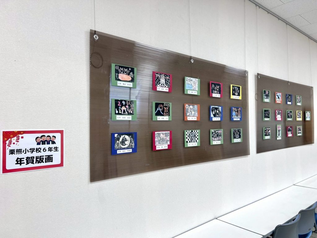 ・あつマロンギャラリー展示替えのお知らせ 2026.02.10 📢 あつマロンギャラリー展示替えのお知らせ 栗熊コミュニティ「あつマロンギャラリー」の展示内容が新しくなりました。今回は、栗熊小学校6年生による年賀版画を展示しています。 子どもたちの想いがこもった作品を、ぜひご覧ください。 🖼 展示期間:2月~3月 あつマロンのご紹介はこちら 訪問者数 3