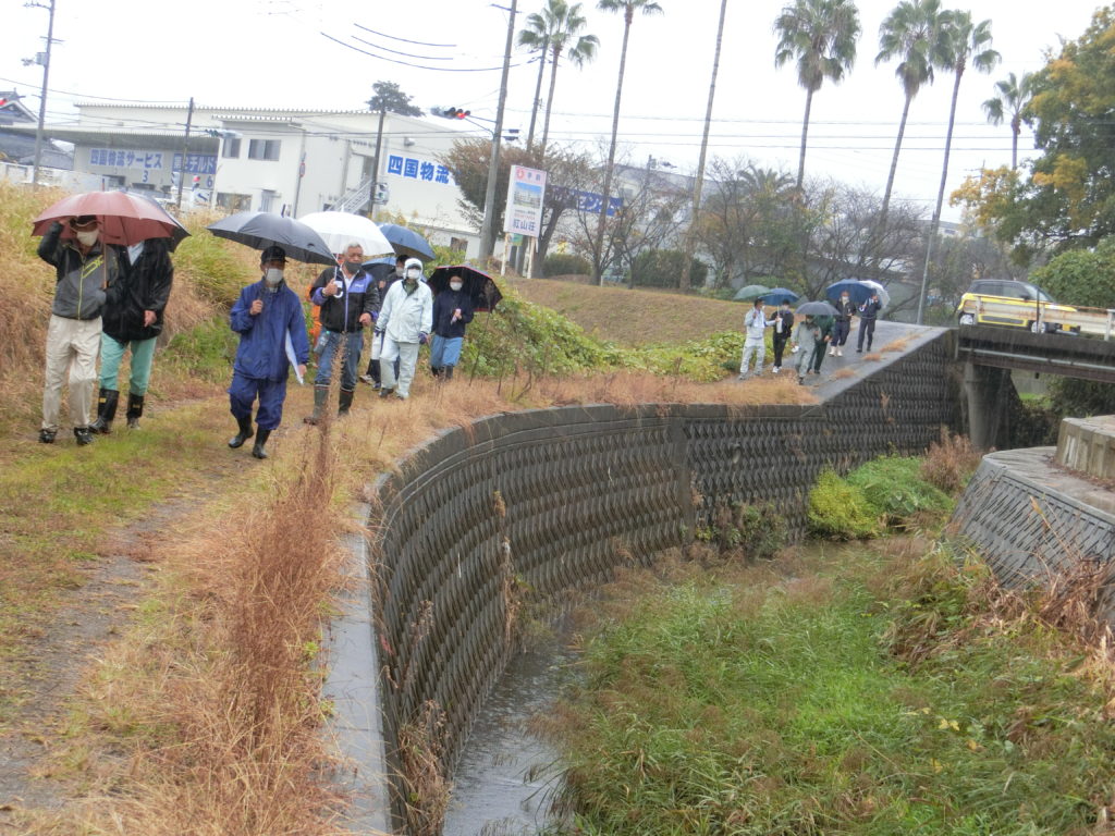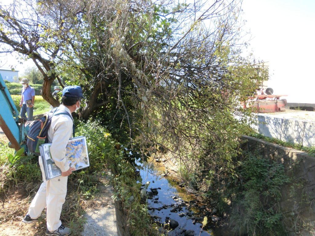 中大束川の流域を当該自治会長・防災担当者・自主防災会で、歩いて周りました。